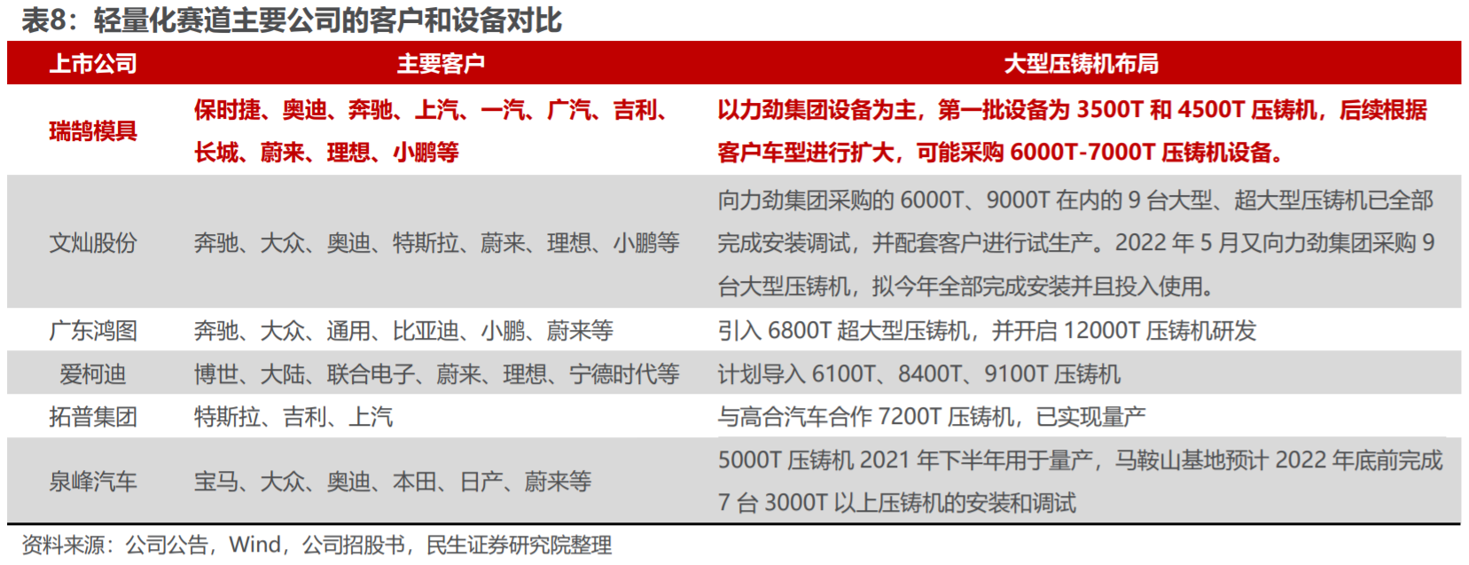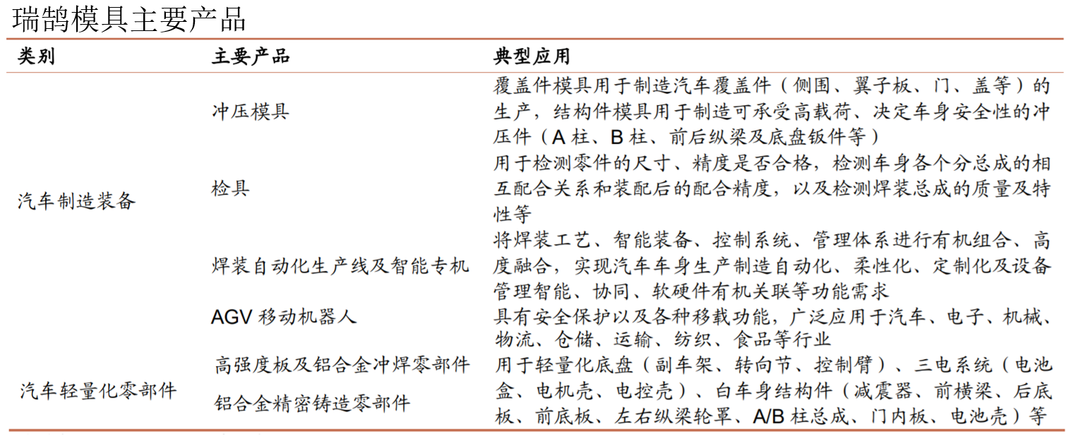 汽车模具老牌龙头,轻量化开辟第二增长曲线。瑞鹄模具是国内汽车模具龙头企业,积极布局轻量化领域。