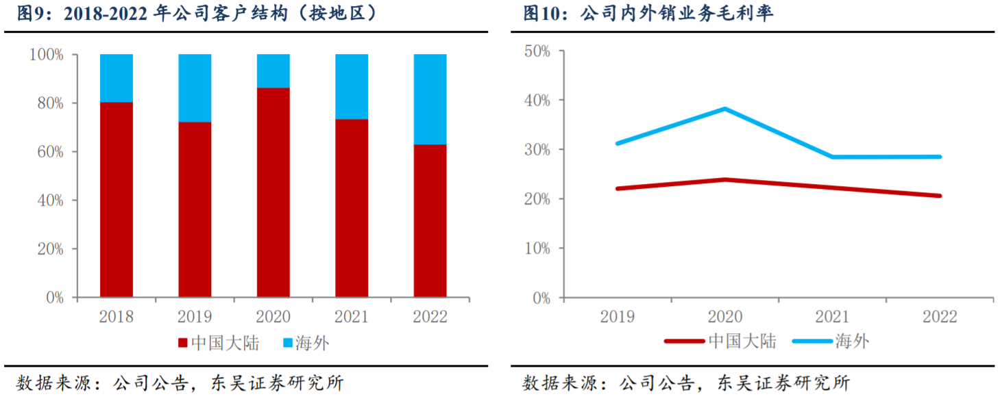 2021年恢复增长态势。公司外销产品主要为冲压模具,增长原因是公司模具业务的竞争力增强,国际主流品牌对公司的采购量进一步增大,2022年度外销的主要客户包括大众、福特、雷诺、通用以及越南、印度等地的自主品牌。公司外销产品的利润率更高,随着海外新能源汽车客户的开拓,预计公司外销收入将继续增长。
