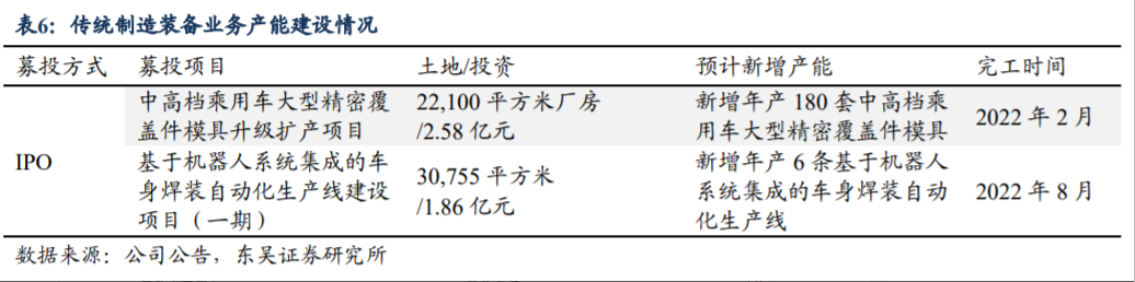 公司募投产能释放,2022年焊装产线项目一阶段建成并满产,二阶段于2022年中旬启动,保障2023-25年增长。