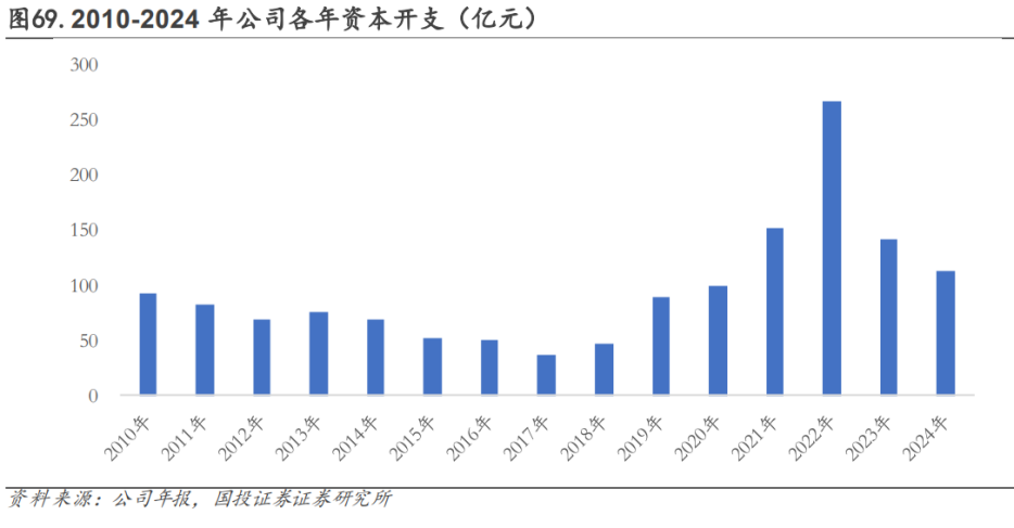 未来3年现金分红不低于50%,凸显长期投资价值。公司上市以来持续进行现金分红,上市以来累计现金分红金额达827.89亿元,分红率为32.27%。近三年,公司现金分红比例平均达49.18%,2024年公司现金分红总额37.47亿元,分红比例为48.68%。2025年3月,公司发布《未来三年股东分红回报规划(2025-2027年度)》,明确2025-2027年每年现金分红金额与股份回购金额(若有)合计不低于当年归母净利润的50%,原则上每年至少一次现金分红,有条件的可以进行中期利润分配。截至2024年底,公司货币资金702.29亿元,占总资产比重约27.58%,2010年至今公司经营性现金流持续净流入,现金储备充裕,保障未来长期分红稳定,增强投资者信心,凸显长期投资价值。