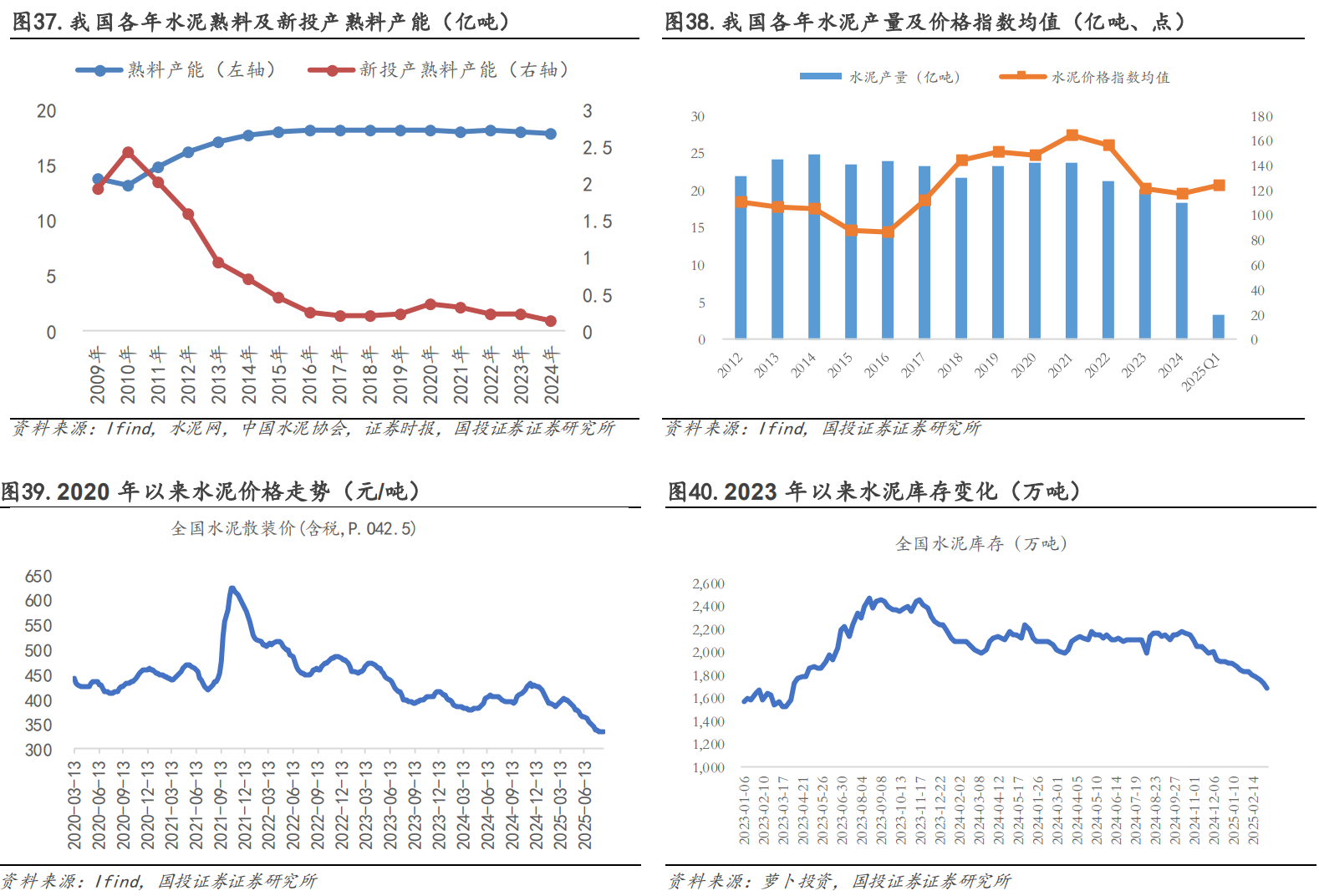 供需情况:当前水泥行业面临需求下行与供给严重过剩的双重压力。需求端,房地产投资持续下滑是主要拖累,2024年房地产开发投资同比下降10.6%;基建投资虽保持增长(2024年同比增长4.4%),但难以完全对冲地产缺口。2024年全国水泥产量同比下降9.5%至18.25亿吨,预计2025年将继续下滑5%-7%。供给端,2024年行业实际产能利用率仅约53%,过剩问题严峻。
