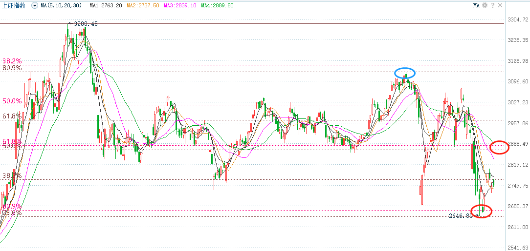 技术分析来看,如果我们把上证指数的双黄金分割线画出来: