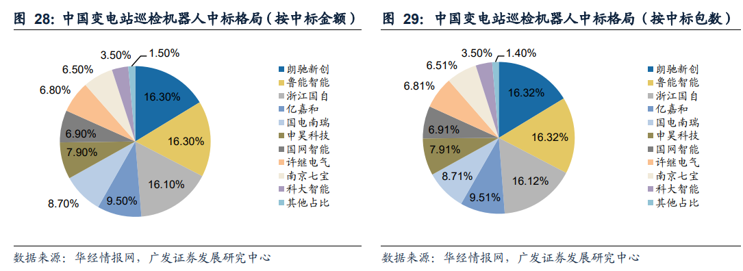 智能巡检机器人市占率约为3.5%,具有一定竞争力。根据华经情报网2023年数据,分中标金额及中标包数看,科大智能在变电站巡检机器人的市占率均为3.5%,在市场中具有一定的竞争力,公司未来将在技术创新和市场拓展方面持续发力,进一步提升市场份额。