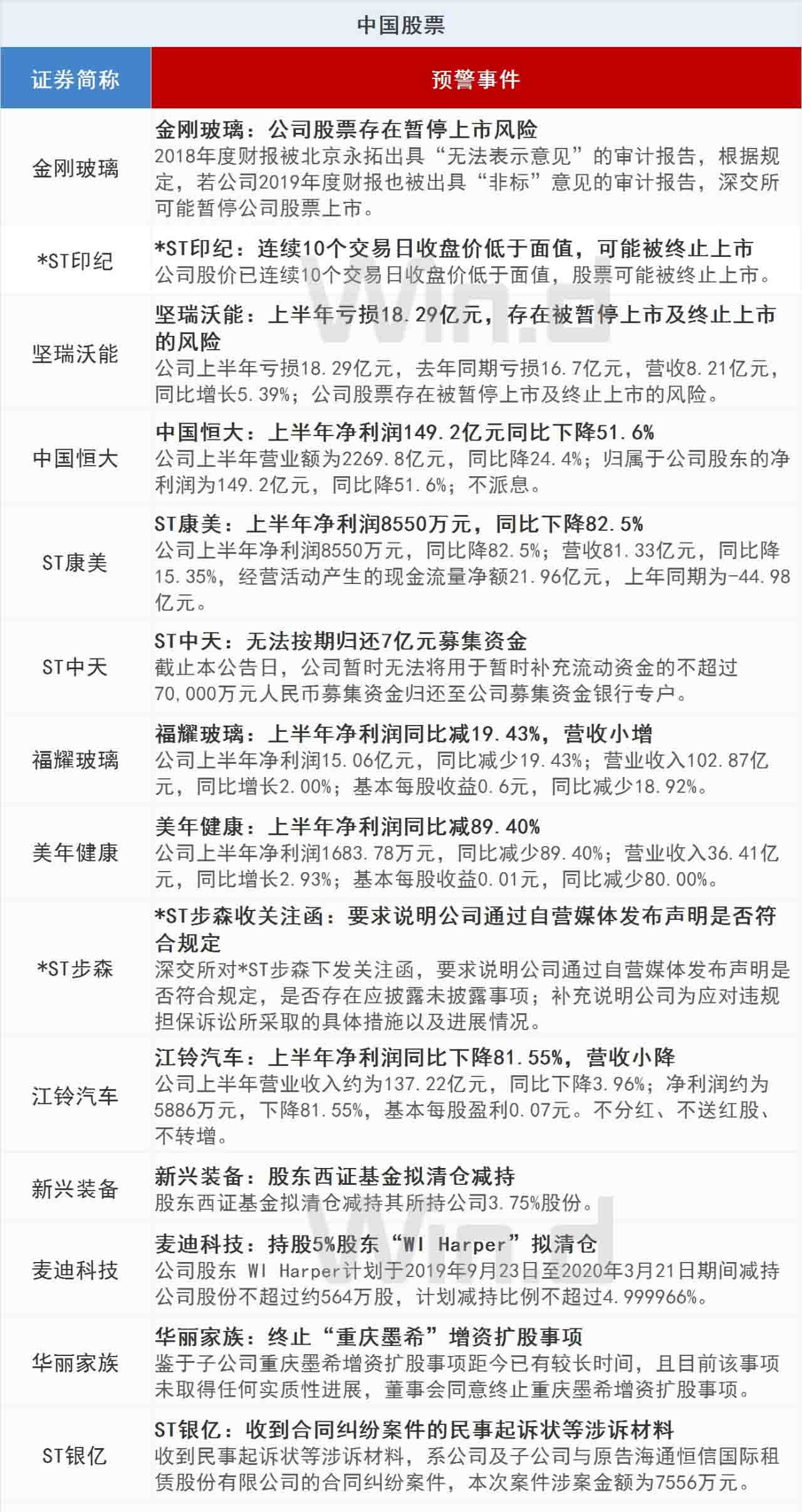 金刚玻璃存在暂停上市风险;*ST印纪或被终止上市