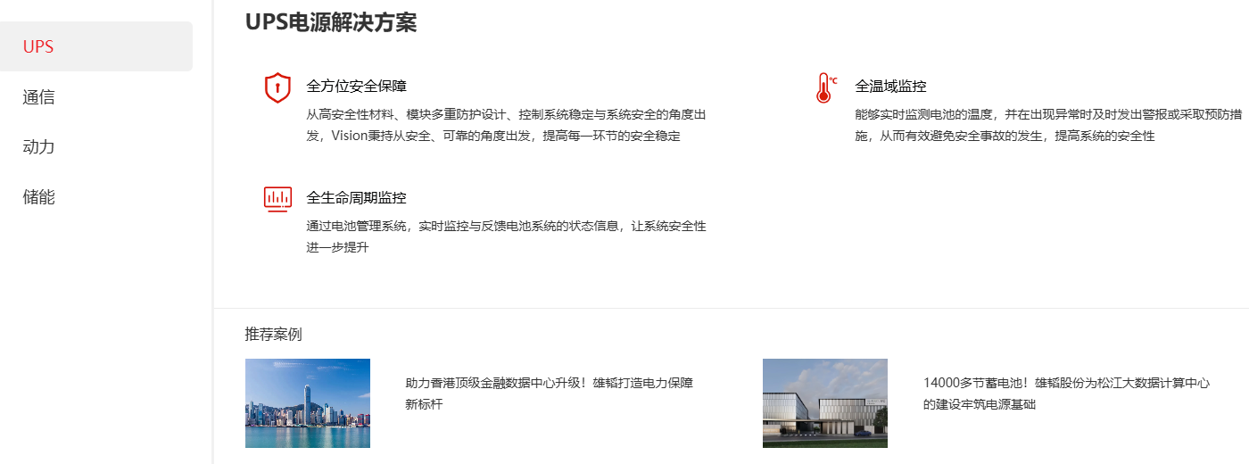作为最初的起家业务,公司数据中心蓄电池产品广泛应用于智算中心、互联网企业数据中心、金融系统数据中心等众多行业领域,国内市场公司与多家头部互联网企业、服务商及金融机构建立了长期合作关系,并成功与伊顿,施耐德,台达,维谛,索克曼等众多大型集成商达成长期合作;在国际市场公司成为入选微软非美区算力中心独家供应商品牌,并在东南亚、欧洲和南美等地区的大型高端数据中心市场占据重要位置,成为公司稳定的业绩基本盘。