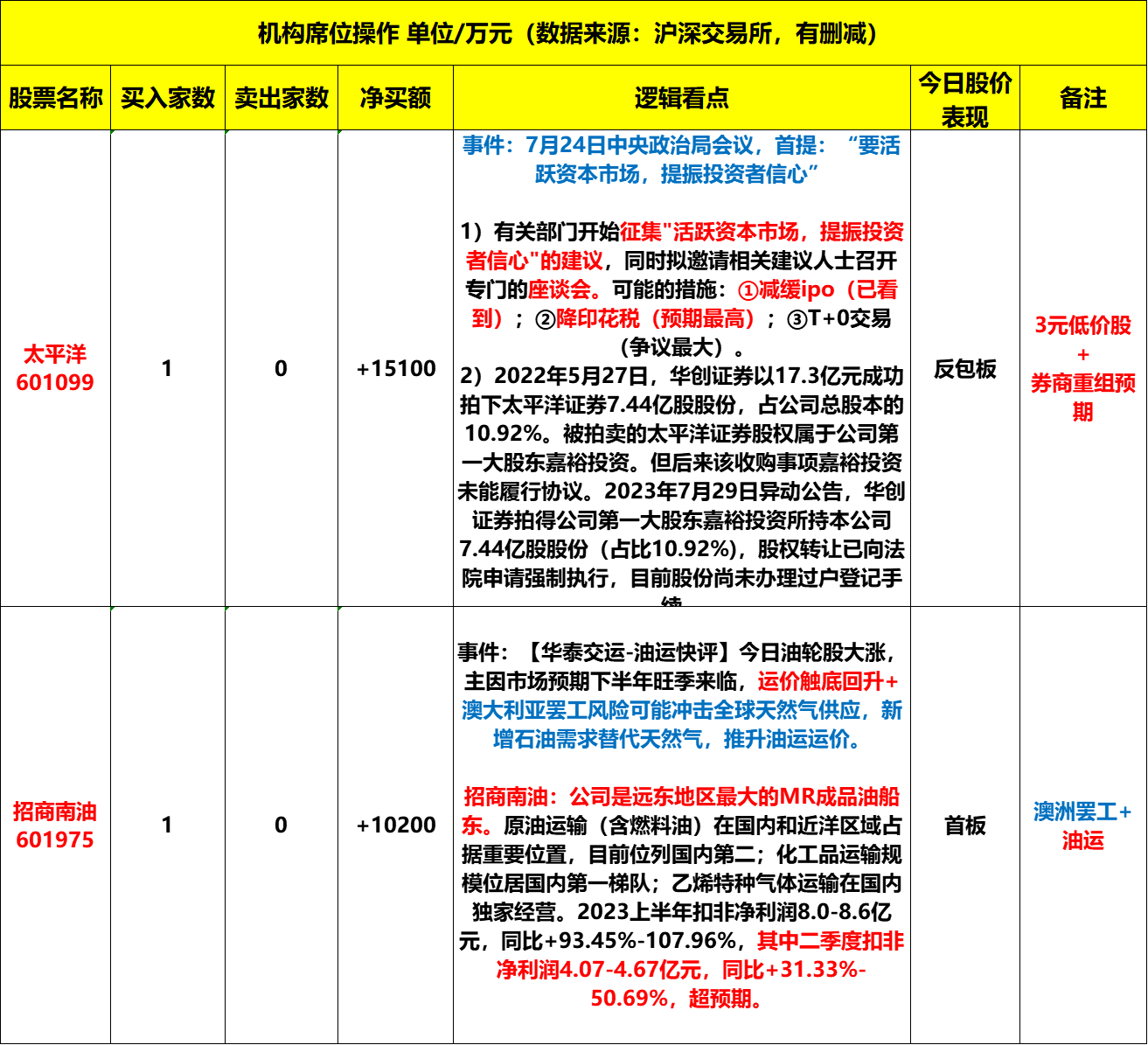龙虎榜:大资金博弈周末政策!机构、游资联手抢筹太平洋