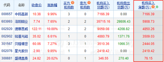 2)龙虎榜机构动向:3月15日,机构参与龙虎榜中个股共涉及23股,其中7股被机构净买入,中钨高新被买入最多,为7166万元。