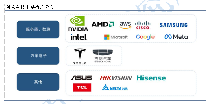 胜宏科技客户资源丰富,与全球众多知名企业建立了长期稳定的合作关系。在AI领域,公司与英伟达、AMD、英特尔等芯片巨头紧密合作,为其提供高性能PCB产品。在汽车电子领域,与特斯拉、博世等企业合作,产品应用于汽车的多个关键系统。在数据中心领域,服务于微软、亚马逊、谷歌等云服务提供商。深度绑定优质客户为胜宏科技带来诸多优势。一方面,大客户的订单需求稳定且规模较大,为公司业绩增长提供坚实保障。另一方面,与大客户的合作促使公司不断提升技术水平和产品质量,以满足其严格要求,从而推动公司技术创新和产品升级。公司为英伟达提供PCB产品,随着英伟达芯片性能的提升和产品迭代,胜宏科技也同步进行技术研发和工艺改进,公司产品asp提升,叠加增量业绩,公司会持续受益于英伟达的合作。