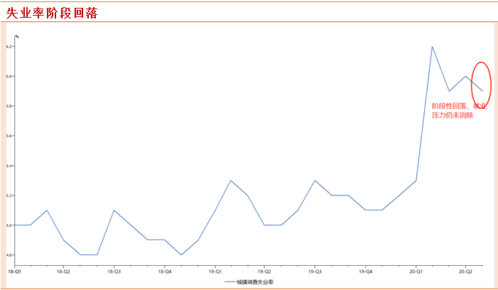 调查失业率略微下降。5月份,全国城镇调查失业率为5.9%,比4月份下降0.1个百分点。1-5月城镇新增就业460万人,完成全年目标51.1%。一方面,这是由于企业复工复产持续拉动就业。另一方面,由于总理提倡“地摊经济”且中央明确不限制居民摆摊,部分失业人员开始自食其力,纳入灵活就业人员管理。同时,由于各地防空措施解除,跨省跨地区求职意愿增强。后续就业压力仍然较大。由于临近毕业季,今年874万大学生对就业市场冲击较大,且近期北京周边地区疫情反复,对就业市场二次负面冲击仍然较大,预计7月失业率将上升,全年以宏观调控为主。