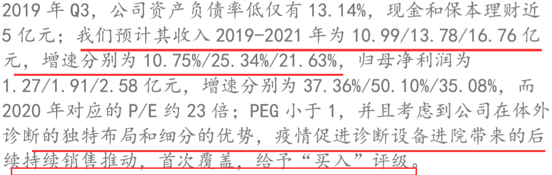 我们预计,公司的体外诊断业务2019年预计收入超过1.4亿元,而在新产品持续推出、产品检测时效和项目完全契合疫情诊断需求情况下,有望快速放量。