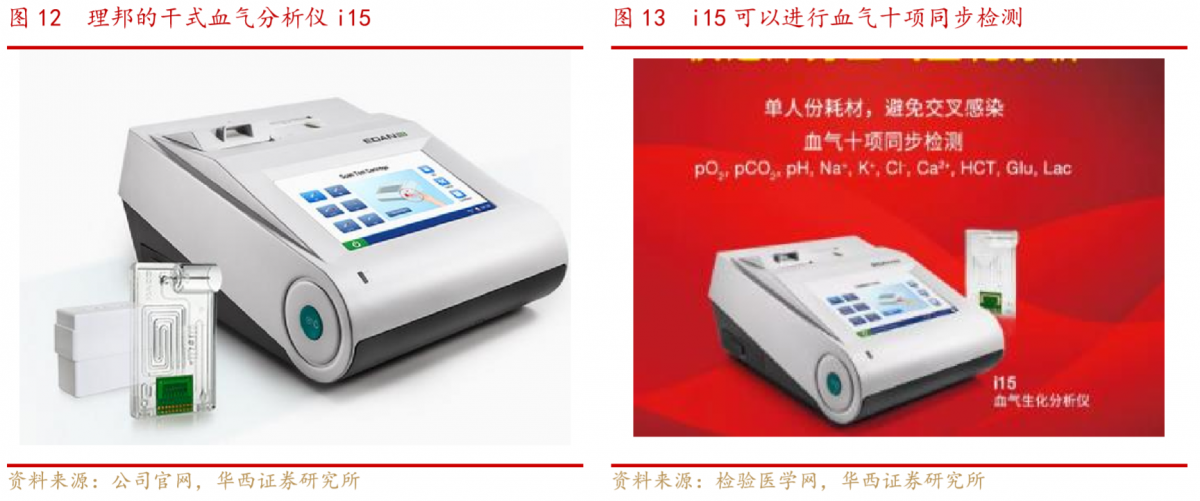 公司血气分析仪i15与雅培的i-stat技术路径具有相似性,但具有两大优势:i-stat不能够实现自动进样,对人操作要求很高,而且由于采集动脉血,医务人员有担心感染潜在传染病的风险,而公司i15实现了自动进样;i-stat配套测试卡要求必须冷藏,而i15测试卡可以常温下储存和使用,降低了成本。