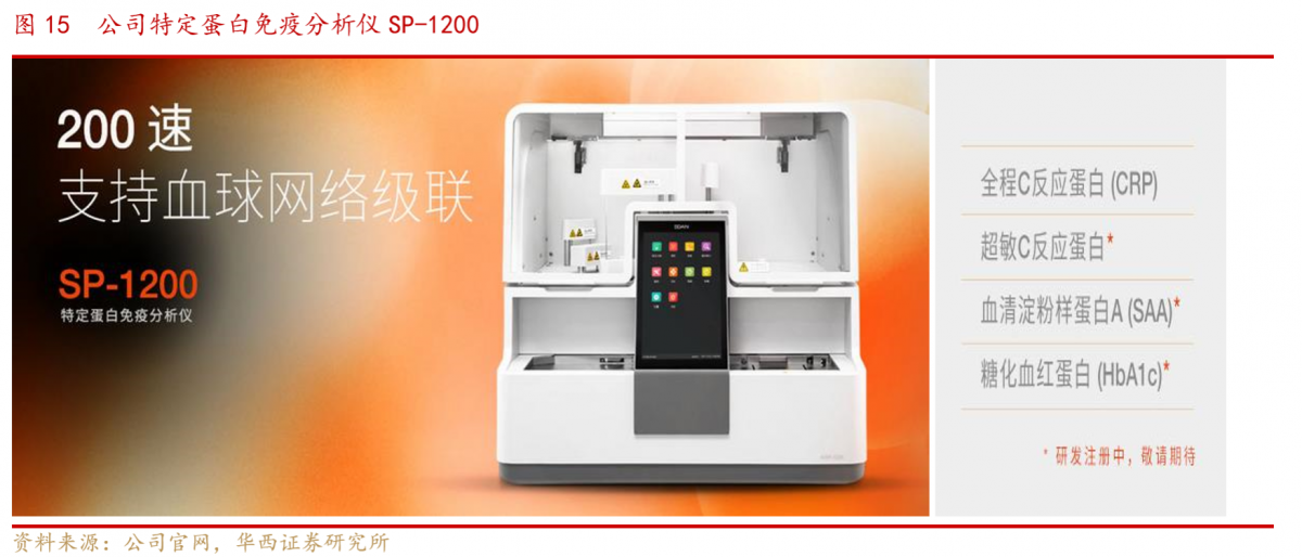 2019年6月,公司自主研发出一款智能高速全自动的特定蛋白分析仪SP-1200取得中国NMPA注册证。其配套耗材全程C反应蛋白也已于2019年7月取得中国NMPA注册证书,可用于心血管疾病危险性评估以及炎症感染程度的检测。