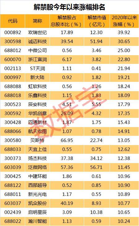 5股解禁前股价涨逾20%