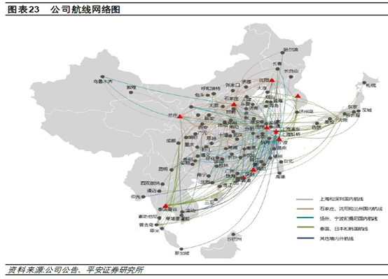 2019年公司座公里营业成本、销售费用、管理费用分别为0.300元、0.006元和0.004元,大幅领先业内同行。航线方面,国际航线运力增幅集中布局在国内出境游热点国家日本、韩国和泰国,国内新设兰州和西安基地,开拓西北区域市场。