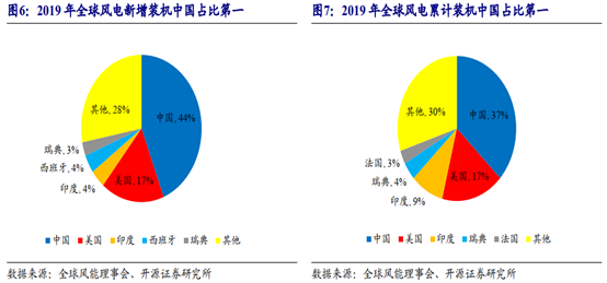 从能源结构来看,风电在欧洲总电力中占比逐渐提升,2018年欧洲风电在总发电量中平均占比15%。国家能源局发布的《风电发展“十三五”规划》中提出,到2020年底,风电约占全国总发电量的6%,距欧洲仍有较大差距,风力发电成长空间可期。