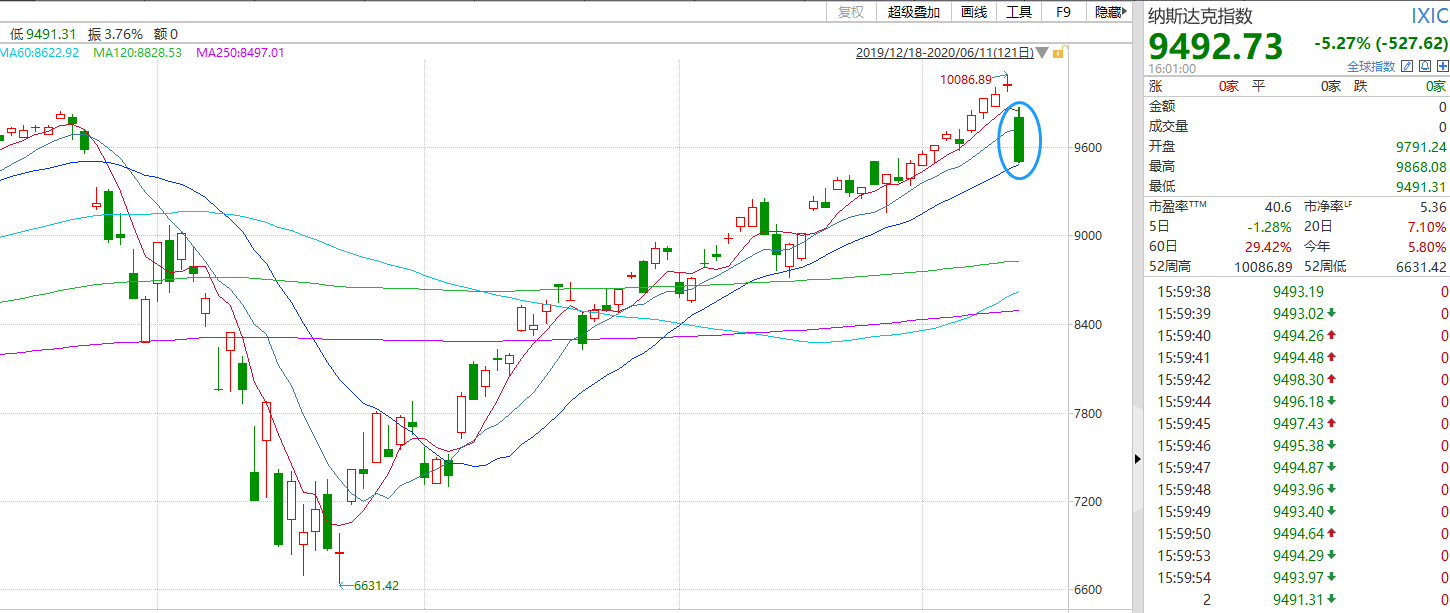 昨晚,美股道琼斯大跌近7%,纳斯达克刚摸上的10000点还没有捂热,就直接变脸回调了。