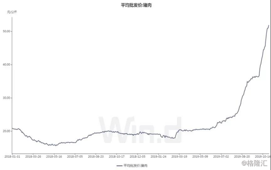 不得不说的是,持续上涨的猪价在非洲猪瘟的作用下,显得十分强悍。据农业部公布的数据显示,截至周一(10月28日),猪肉平均批发价为51.93元/公斤,年内涨幅168.93%。而如此高的猪肉价格,也让大众直呼“吃不起猪肉了”。