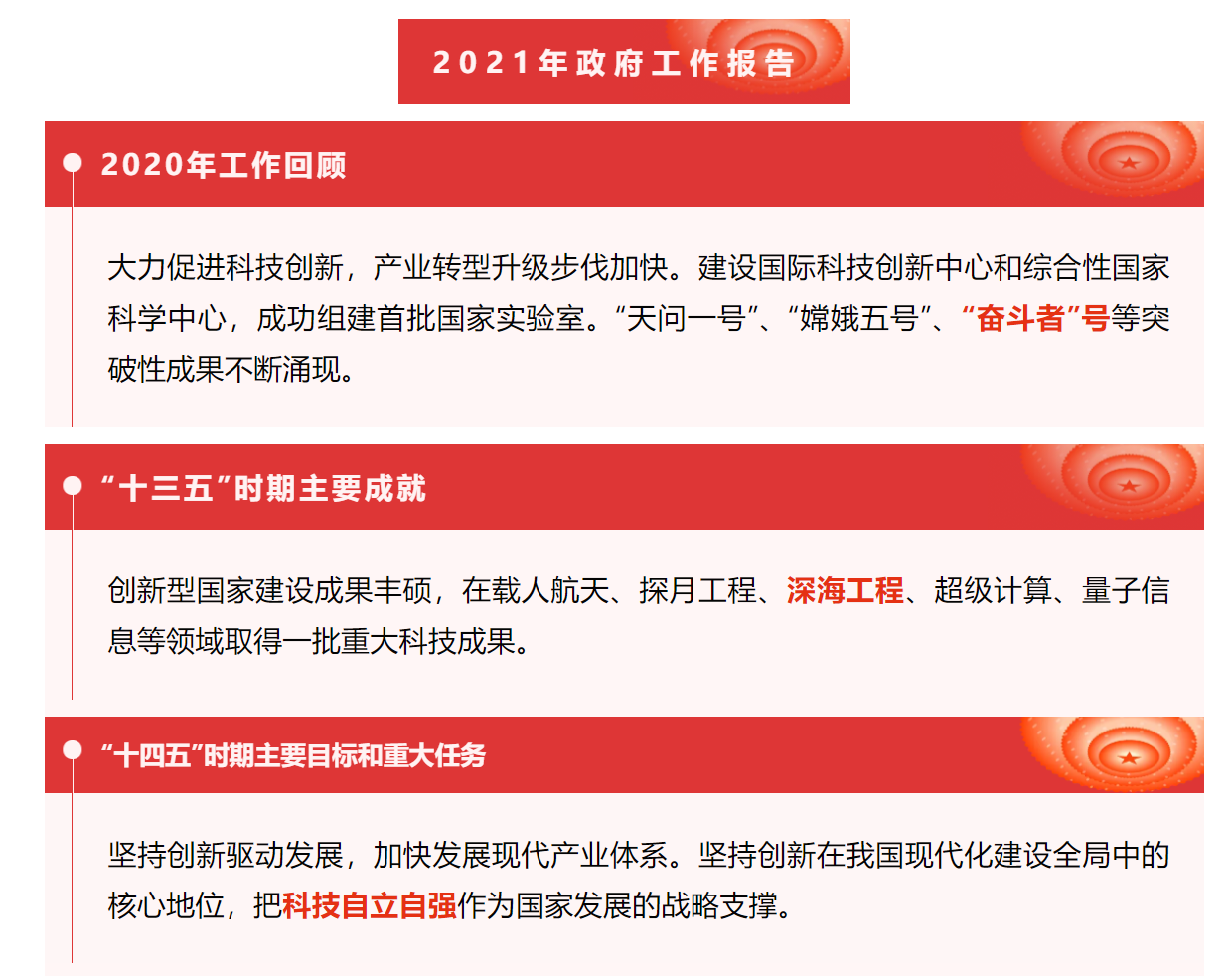 力争在深海装备、深海探测、深海通信导航、深海动力能源和深海装备材料等重大科技创新上有所突破,带动我国深海科技创新能力整体跃升。