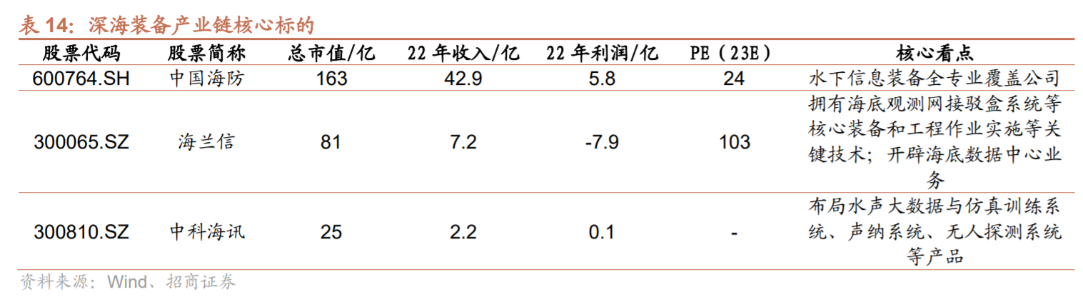 分系统:中国海防、中国动力、海兰信、中科海讯、中远海科(软件)