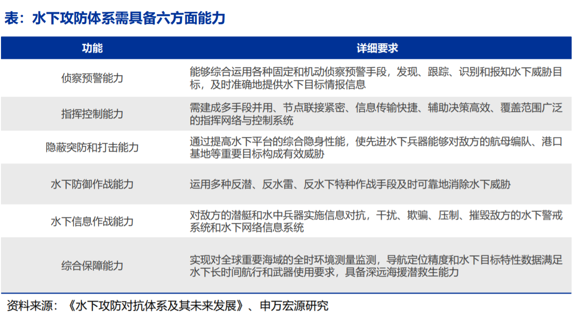 我国载人潜航器起步较晚,在国家重大专项支持下大力发展。水下监听系统:机动固基协同作战,海陆空天立体防御网络。