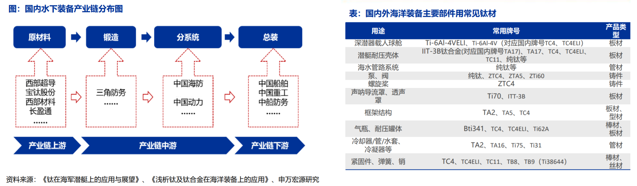 宝钛股份:相继承担了4500米级、6000米级、万米级载人潜水器钛合金载人球壳的研制工作,奠定了公司在国内深海装备用钛领域的先发优势。