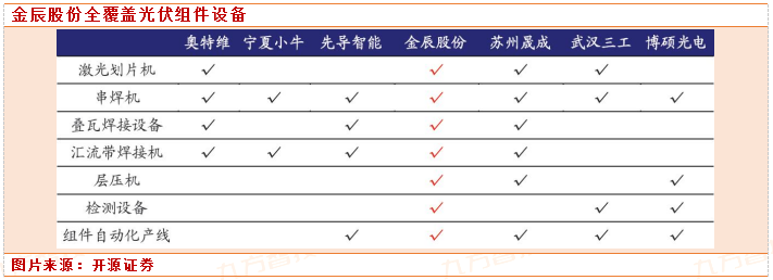 组件设备方面,公司自2015年开始布局叠瓦技术,同时布局电池片串焊机、丝网印刷机、激光划片机等设备。