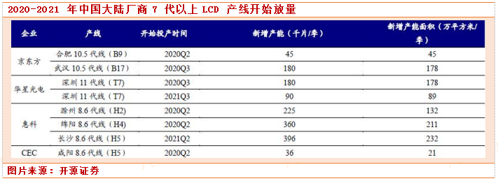 国内高世代线开始放量,我国配套湿电子化学品进入黄金发展期。2020 年京东方武汉G10.5 线、华星光电深圳G11 代线、惠科滁州G8.6 代线等集中投产,且2021 年投产量还会进一步增加。