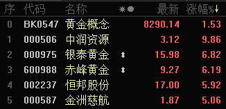 A股市场方面,黄金板块个股继续强势,中润资源、银泰黄金、赤峰黄金、恒邦股份等个股均大涨超5%。