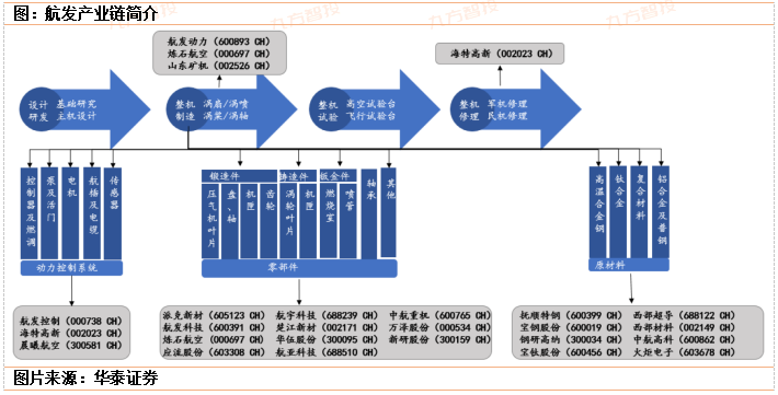 其二,面对下游整机主机单位的产能需求提升,中上游核心系统配套环节也将迎来景气扩产浪潮;其中,具备高度需求刚性的航发赛道有望继续脱颖而出。