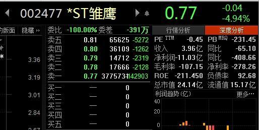今天,曾经“欠债肉偿饿死猪”的*ST雏鹰开盘跌停报收0.77元,这是它股价连续低于1元的第18天,退市成定局。盘面上,18万余户股东依然在做着困兽之战。