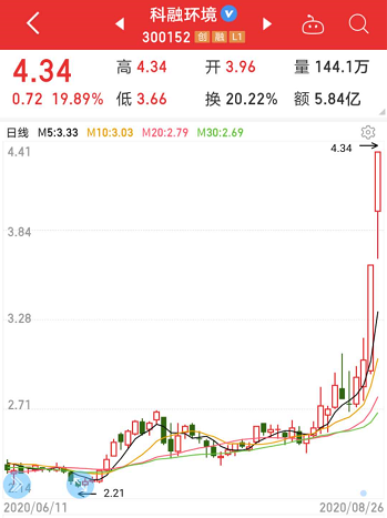 今天领涨的环保股多涉及固废处理业务,部分个股昨天下午已出现异动。科融环境连续两日封于20%的涨停板,累计换手超40%。8月以来公司股价加速反弹,月内涨幅达75.71%,成为本轮环保行情的领涨龙头。公司是集节能燃烧、水利及水环境治理、固废污染物处理等业务于一体的环境综合治理平台。