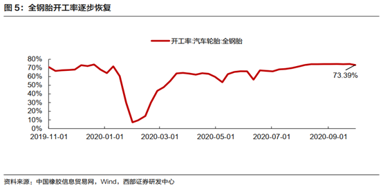 在国内新冠疫情得到有效控制后,5月起乘用车产销便开始同比转正。随着金九银十的乘用车旺季到来,行业销量持续向好。9月国内半钢胎平均开工率已经突破70%,头部胎企产能处于满负荷运营状态。