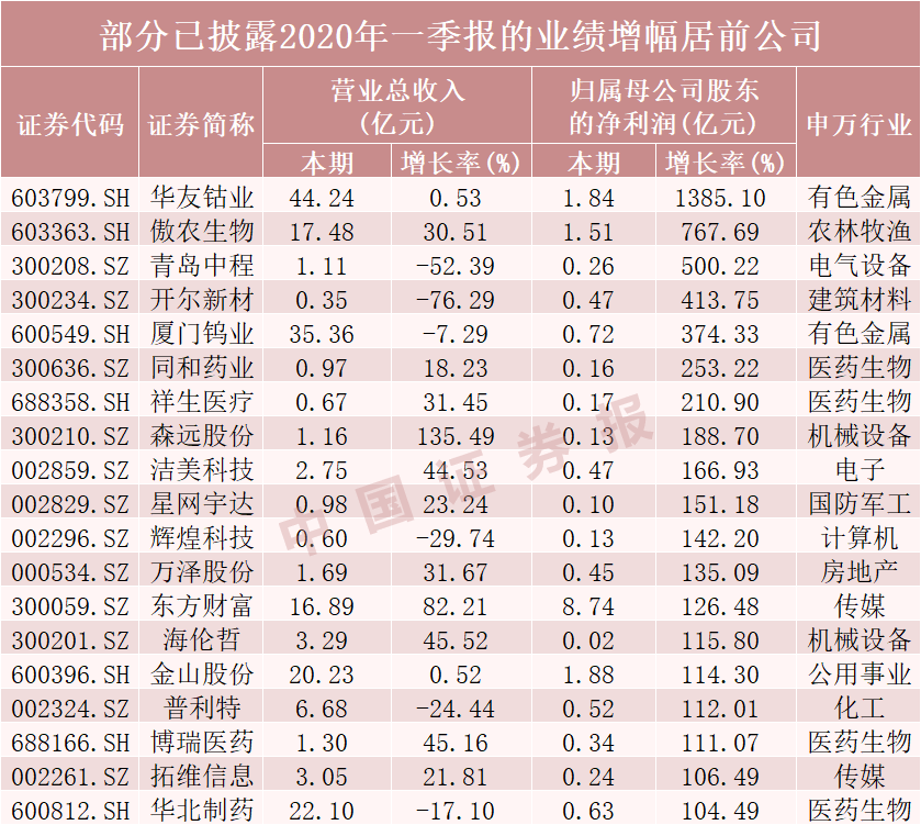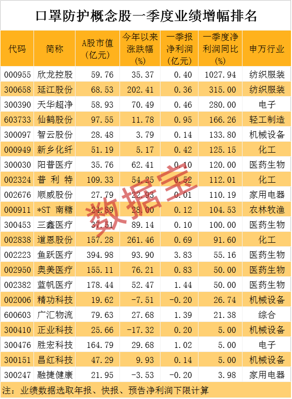 最牛口罩股问鼎A股年内涨幅榜冠军!一季报出炉,19家公司业绩翻番!