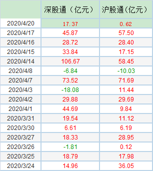 根据沪股通、深股通每日前十大活跃股数据来看,3月24日以来截至4月20日,沪深两市共有50只个股期间分别现身沪股通、深股通每日前十大活跃股榜单。其中,41只个股获得北上资金净买入。