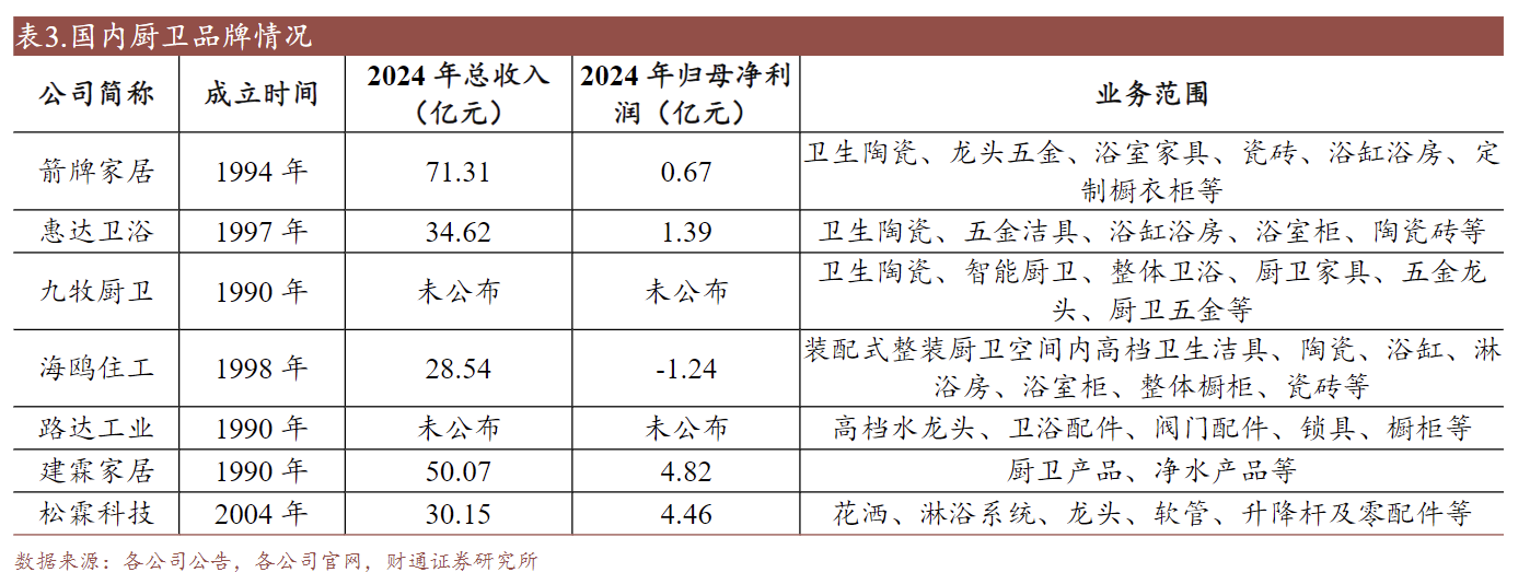 国内厨卫配件品牌发展相对缓慢,近年来通过持续研发投入,不断扩大生产制造规模。本土厨卫品牌21世纪初开始高速增长,部分民族厨卫品牌开始竞争中、高端市场,外资品牌与本土品牌市场愈发重叠。当前,国内厨卫配件企业可分为三类: