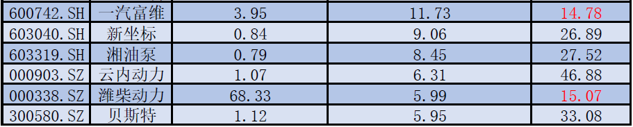 天润工业、常熟汽饰、远东传动、富奥股份、威孚高科等板块个股当前动态市盈率仍低于20倍,低估值个股随着板块整体估值抬升有望获资金青睐。