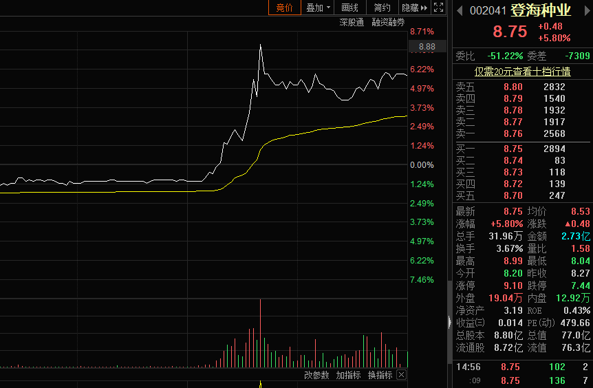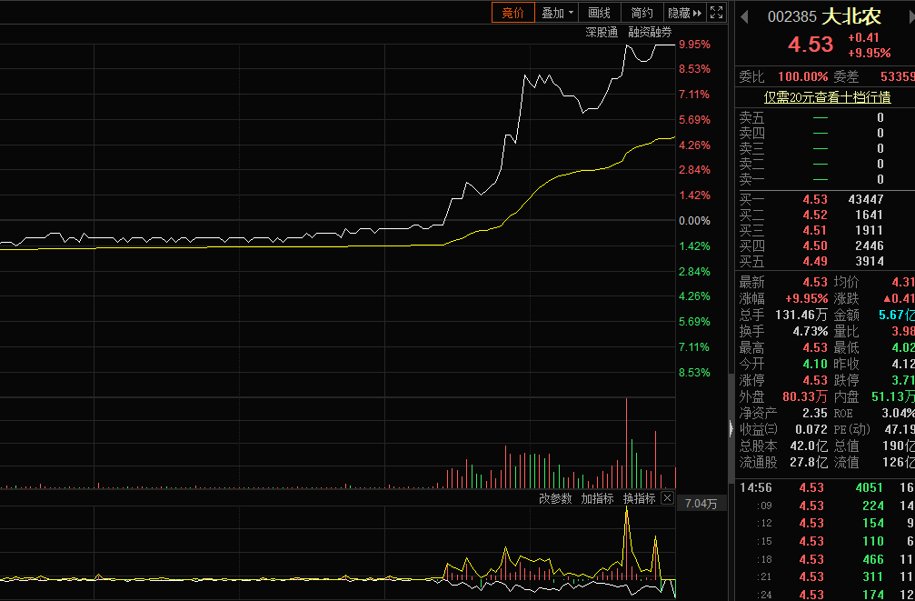 盘面上来看,受消息刺激,大北农尾盘封死涨停,概念股登海种业大涨5%。