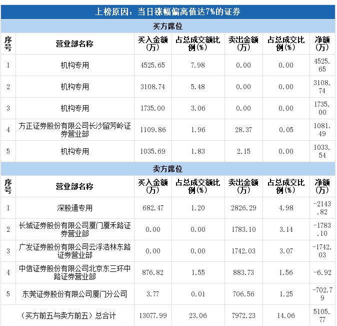 数据显示,今日共4个机构席位出现在大北农龙虎榜单上,分别位列买一、买二、买三、买五,合计净买入1.04亿元,是今日龙虎榜中获机构净买入最多的个股。