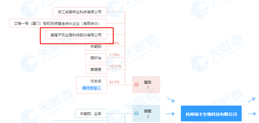 天眼查数据显示,隆平高科为杭州瑞丰股东之一,隆平高科股价尾盘拉涨逾6%。