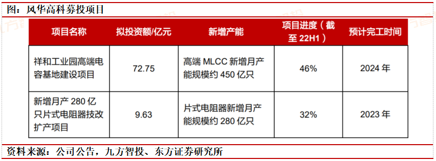 公司5G通信用高品质MLCC项目投资总额18.7亿元,新增年产MLCC产能2400亿只,预计2022年12月全部投产;高容量系列多层片式陶瓷电容器扩产项目投资37.3亿元,预计新增年产MLCC产能3000亿只,三年间设计产能将分别达到20%,60%,100%,预计2024年5月全部投产。