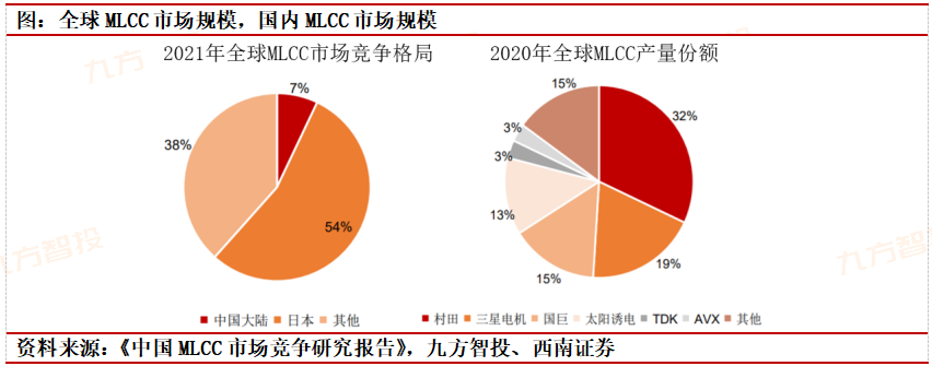 MLCC市场集中度较高,日本占据行业主导地位。从市场格局来看,全球MLCC核心制造厂商主要集中在日本、韩国、中国台湾、美国和中国大陆。