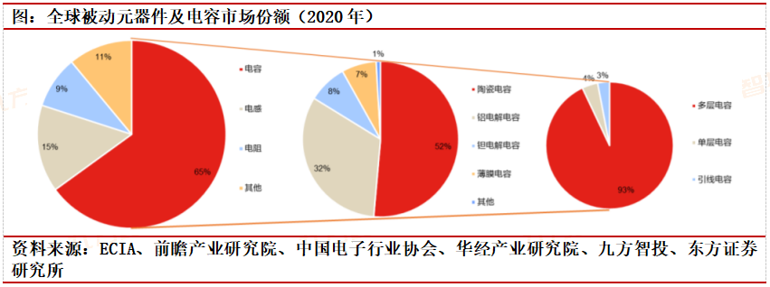 MLCC市场规模占整个陶瓷电容器的93%,是最主要的被动元器件类型。