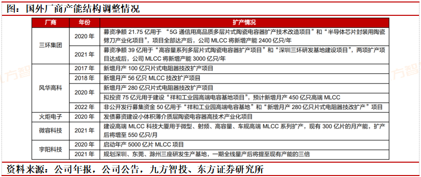 国内厂商有望承接常规MLCC产能,纷纷扩产抢占市场份额。