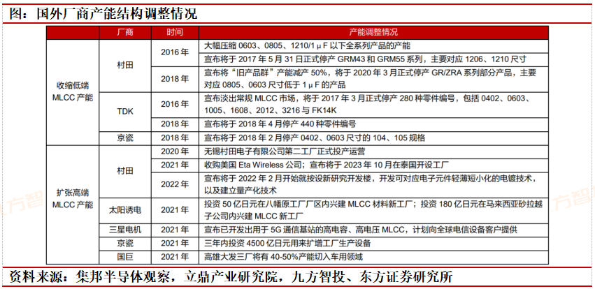 日韩厂商削减普通规格MLCC产能,着力发展高端领域。