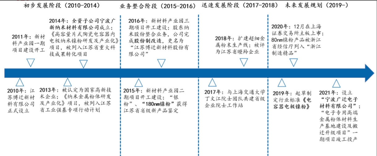 博迁新材:致力于纳米金属材料研发与产业化应用的开拓发展,产品覆盖镍粉、铜粉、银粉等纯金属粉,合金粉,银包铜粉、硅粉等其他粉材,是全球唯一一家80nm镍粉供应商。以镍粉为主,布局丰富金属材料粉体产品。打破昭荣化学、住友金属、东邦钛等日企对MLCC用镍粉垄断。