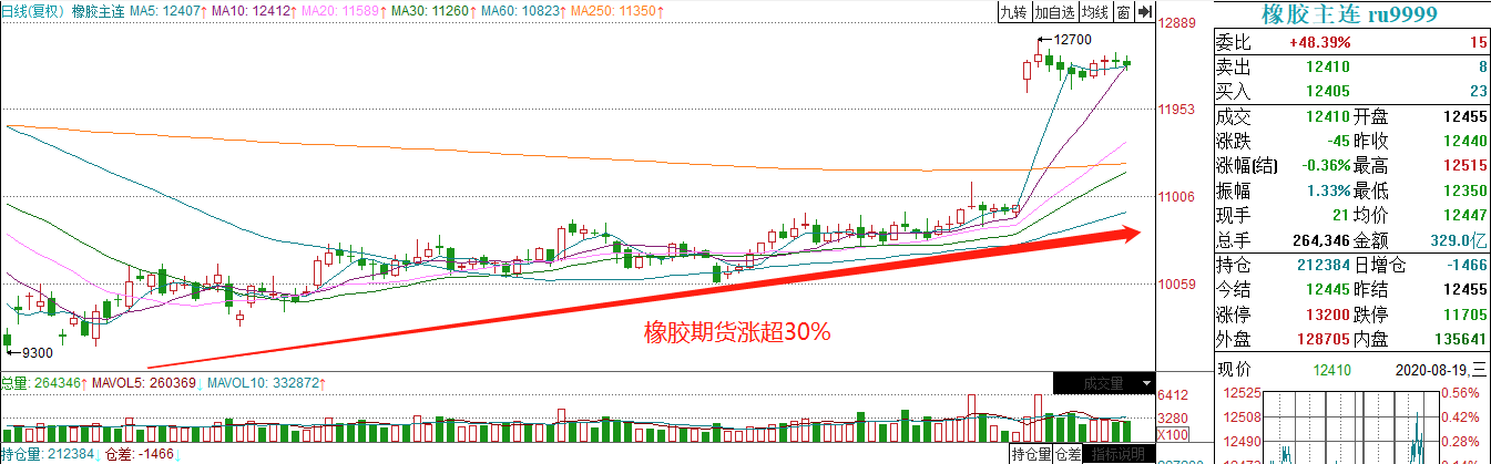 天然橡胶从春节之后收盘最低报价1050美金/吨到1410美金/吨,涨了30%以上。