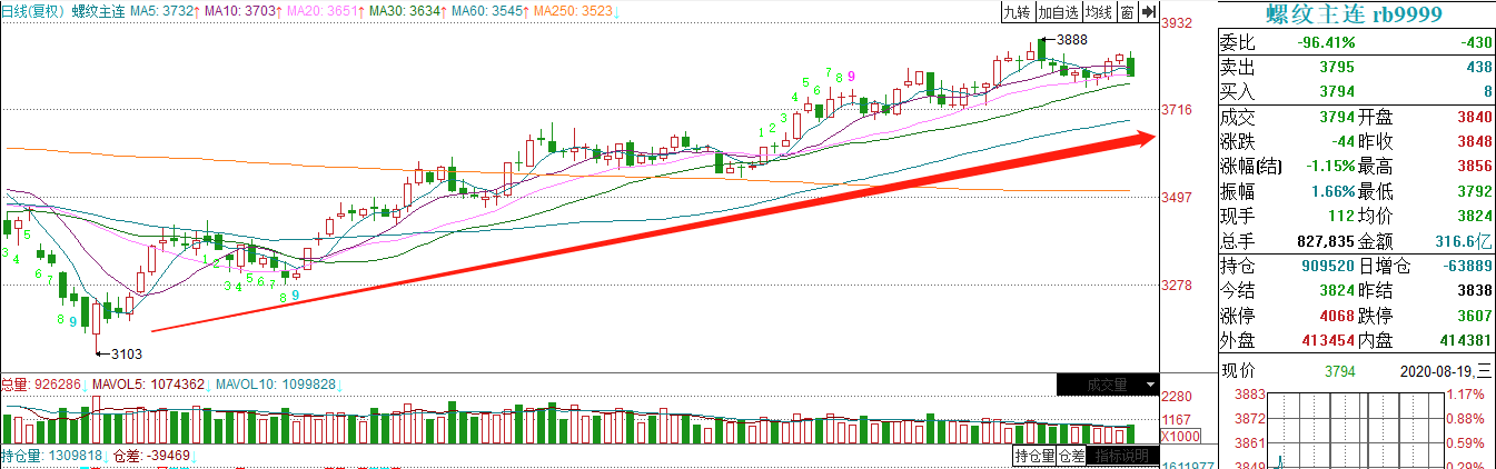 在全国钢材产量增加的情况下,螺纹钢主力合约由4月份的3100点增长到目前的3888点以上,三个月时间涨幅超20%。