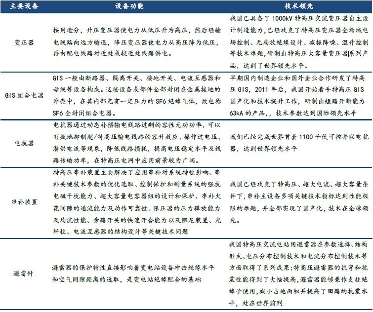 特高压主要设备功能和我国技术领先情况 |
