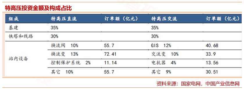 特高压建设中设备投资约占总投资额的35%左右。