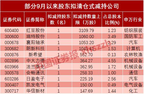 警惕!11家公司股东计划清仓式减持